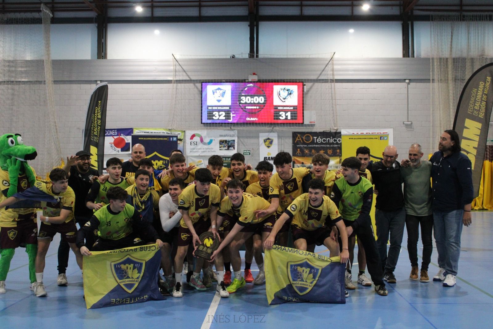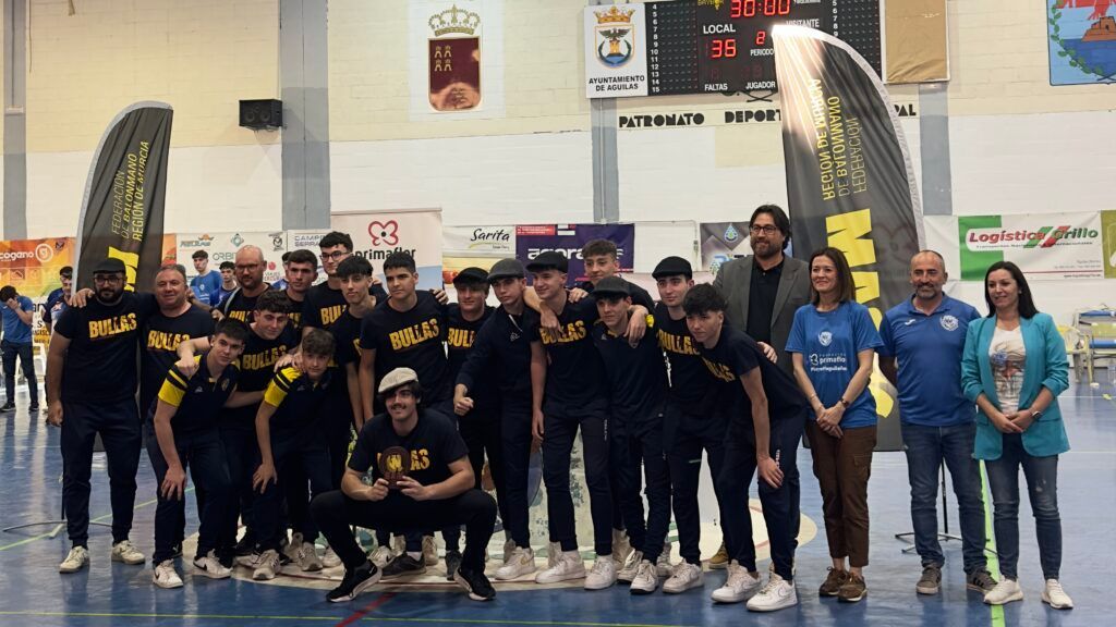 La fase final del campeonato se daba cita en el pabellón Juan Valera de Bullas, dónde los cuatro mejores equipos disputaban las semifinales el sábado. La primera semifinal enfrentaba a nuestros chicos contra Mostacho Maristas Ademur, en una montaña rusa de emociones y vaivenes en el marcador. El partido comenzó con un mal arranque de nuestro equipo, que notó la presión de jugar en casa y tener que conseguir la victoria. El equipo murciano poco a poco lograba imponer su juego y lograr una ventaja en el marcador de hasta cuatro goles que sería de tres al descanso. Los nuestros mostraron otra cara en la segunda parte y lograban dar la vuelta al encuentro en los primeros diez minutos, pero ambos equipos seguían luchando y dando un gran espectáculo a la grada abarrotada del Juan Valera. Dos estilos diferentes de juego que hacía que la igualdad fuera continua, y así se llegaba con empate a 25. Diez minutos más esperaban por delante, alargando el emocionante espectáculo que daban ambos conjuntos. En la prórroga, los primeros cinco minutos el club murciano sacaba una renta de dos goles, los cuales aumentarían en la segunda parte hasta tres a falta de dos minutos y medio. En ese momento los nuestros, empujados por la afición comenzaron a remontar y lograr el empate a falta de pocos segundo. Ambos equipos dispusieron de jugada para llevarse el encuentro pero llegamos a la tanda de siete metros, y todo por decidir. La tanda empezó con emoción, ya que en los dos primeros lanzamientos cada equipo falló un lanzamiento. Al terminar la primera tanda de cinco lanzamientos el empate seguía en el marcador, fue hasta el lanzamiento número ocho, cuando el fallo del jugador de Ademur, nos dio el pase a la final. En la otra semifinal entre Primaflor Balonmano Águilas y Club Maristas Cartagena, comenzó con un arranque arrollador de los aguileños, que lograban una rápida ventaja en el marcador de hasta siete goles, pero los cartageneros no bajaron los brazos y recortaban hasta tres goles la diferencia al descanso. En la segunda mitad la diferencia se mantenía hasta que un último esfuerzo de los de Cartagena lograban empatar el partido a falta de diez minutos. La defensa abierta y el desgaste en el esfuerzo de ir detrás del marcador, hizo mella en los chicos de Maristas y Águilas poco a poco se volvía a marchar en el marcador, hasta lograr la victoria por 37 a 33. Y sin apenas 24 horas de recuperación para nuestros corazones, volvía la emoción al pabellón Juan Valera. La tarde comenzó con la final por el tercer y cuarto puesto, donde Club Balonmano Maristas no dio opción a Mostacho Maristas Ademur, y logró la victoria 38 a 33, en un partido donde se notó el desgaste del día anterior. Por último, era la hora del plato fuerte de la tarde, la final que vienen regalando estas dos generaciones desde alevines. Desde esa final se han vuelto a ver en la final infantil y cadete, y era el turno de la juvenil. El pabellón repleto de afición estaba preparada para vivir una tarde del mejor balonmano, y no defraudó. La final comenzaba con igualdad hasta el minuto 10, dónde el equipo de Águilas lograba una renta de tres goles. La cantidad de precipitaciones de los chicos de Bullas y la rapidez en la contra de Águilas hacía que la diferencia a falta de cinco minutos para el descanso fuera de nueve tantos. La grada seguía animando y creyendo en el equipo y en cinco minutos el equipo logró no encajar y bajar la diferencia hasta los cinco goles. La ventaja era considerable al inicio de la segunda mitad, pero la fe del equipo y de la grada seguía poco a poco bajando la diferencia en el marcador, con rachas de ambos equipos la distancia ahora era de tres goles a falta de diez minutos. Ambos equipos seguían dándolo todo en la pista y ofreciendo un gran espectáculo a la grada abarrotada del Juan Valera. Llegaba el tramo final del partido, partido que nuestro equipo estuvo detrás en el marcador, pero en el minuto 28, Juanmi lograba el gol que nos ponía uno arriba a falta de dos minutos. Rápidamente a través de Ginés, Águilas empataba nuevamente el partido. Un nuevo ataque se precedía para Bullas, después de varios golpes francos, Marcos sacaba para Ismael en el lateral derecho, el pase a Juanmi en el centro, que devolvía a Ismael y hacía llegar el balón a Iván Valera, que desde el extremo derecho, lograba meter el gol que nos volvía poner por delante de la final. Ahora tocaba defender el ataque de Águilas que tenía cincuenta segundo por delante para buscar el empate. El ataque comenzaba con la entrada por la zona central con parada de David, pero con golpe franco en la zona defendida por Iván Martínez y Fabio Martínez. El equipo atacante insistía en esa zona con sus lanzadores, pero volvía a encontrarse con David y nuestra defensa, después de dos golpes francos, se produjo el último lanzamiento que detuvo David a falta de tres segundos y con ello, el final del partido y el éxtasis en la pista y la grada. Llegó el título de campeones de la Región de Murcia, en una de las fases finales más igualadas y emocionantes de los últimos años, en casa con nuestra afición que fue el jugador número ocho que nunca dejó de creer. Un broche de oro para la generación del 2007/2008, que cierran una etapa formativa con este título para la historia del club. La entrega de trofeos tuvo la presencia de Alfonso Sánchez, Concejal de Deportes del Ayuntamiento de Bullas y Daniel Santos, Presidente de la Federación de Balonmano de la Región de Murcia. Y una vez alzado el trofeo la fiesta de la grada se trasladó a la pista, donde todas esas generaciones que se quedaron a las puertas, celebraron este título como suyo y la celebración de todo el club y todo el pueblo de Bullas.